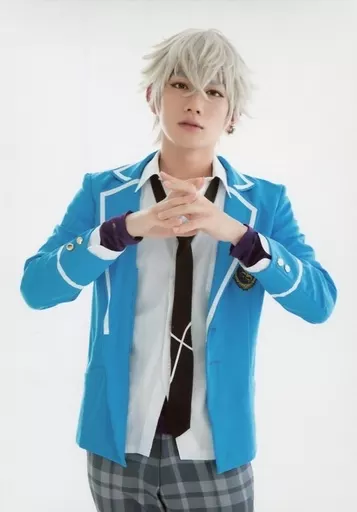 Japanese title: 生写真(男性)/俳優 赤澤遼太郎(大神晃牙)/膝上・制服・両手重ね・背景白・キャラクターショット/「『あんさんぶるスターズ!オン・ステージ』あんステフェスティバル」トレーディングブロマイドA