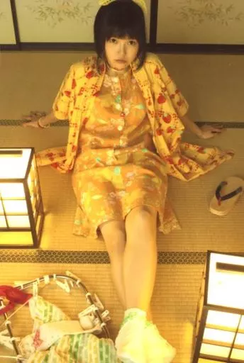 Official photo (female) / photographer Roman / Whole Body, Costume Orange, Sitting on the Floor, Foot Crossing, Both Hands Behind, Tatami, Postcard Size / "Laundry Girl" Postcard Photo
