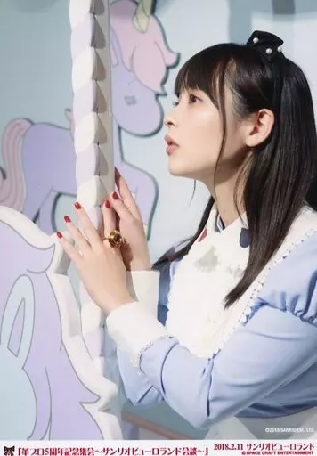 Official photo (female) / voice actor Sumire Uesaka / Upper Body / Left Facing / Clothes Light Blue / White / Both Hands Pole / 「 Leather Broom 5 th Anniversary Celebration ~ Sanrio Puroland Meeting ~ 」 Bromide Set