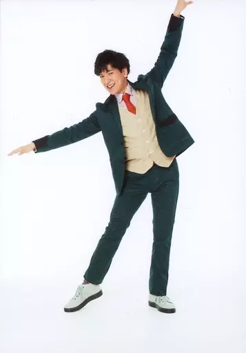 Japanese title: 生写真(男性)/俳優 立崇なおと/全身・衣装緑ベージュ・ネクタイ・両手上げ・顔斜め左向き/「Nostalgic Wonderland ~song & dance show~」ランダムフォト