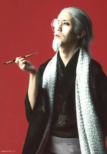 Official photo (male) / actor Hirota Kato (Hirotsu Ryuro) / Above-the-knee ・ Kimono ・ Right hand smoke tube ・ Background red ・ Cutter Character shot / Stage "BUNGO STRAY DOGS Era of Black" Bromide Set (Another ver.)