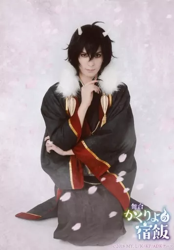 Japanese title: 生写真(男性)/俳優 仲田博喜(大旦那)/座り・右手顎・花びら・キャラクターショット/舞台「かくりよの宿飯」L判個人ブロマイドセット