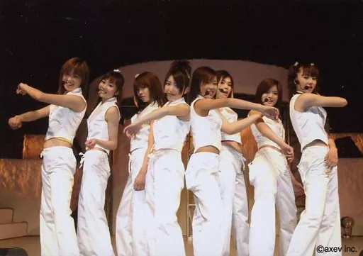 Japanese title: 生写真(女性)/アイドル/Dream Dream/集合(8人)/横型・膝上・衣装白・ノースリーブ・体外向き・片手上げ・背中合わせ/公式生写真