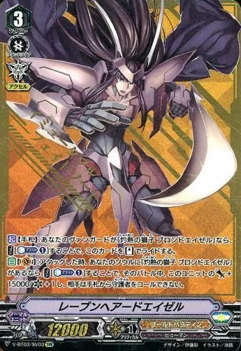 Japanese title: ヴァンガード/SVR/ノーマルユニット/ゴールドパラディン/ブースターパック第3弾「宮地学園CF部」 V-BT03/SV03[SVR]:レーブンヘアードエイゼル