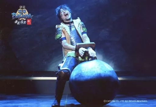 Official photo (male) / actor Yuichi Ito (Kanbei KURODA) / Live Photo / Horizontal Type / Whole Body / Costume Beige Black / Mouth Open / Face Up / Iron Ball / Character Actor Shot / 「 Zangeki 『 Sengoku BASARA 』 Blue Red Ranyo "『 Red 』 Pride in the Future" 」 Stage Photo