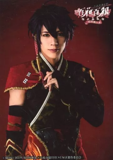 Japanese title: 生写真(男性)/俳優 古谷大和(月下丸)/上半身・背景赤・キャラクターショット/忍法浪漫剣劇「百花百狼 ~戦国忍法帖~」~月下丸の章~ ブロマイド