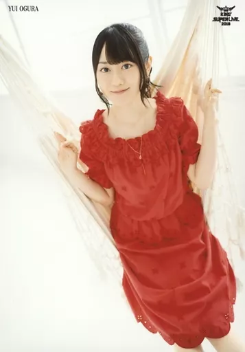 Japanese title: 生写真(女性)/声優 小倉唯/膝上・衣装赤・両手布/「KING SUPER LIVE 2018」ブロマイド