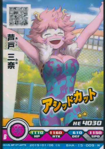 分類:バトルカード/レア度:Nシリーズ:PU7弾商品解説■アニメ「僕のヒーローアカデミア」のアミューズメントゲーム『ヒーローズバトル』略して『ヒロバト』