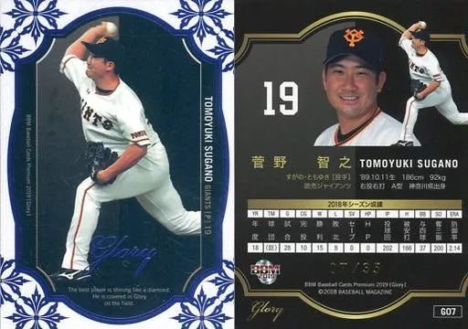 Japanese title: BBM/レギュラーカード/読売ジャイアンツ/BBM2019 GLORY G07[レギュラーカード]:菅野智之(パープル箔押しパラレル)(/35)