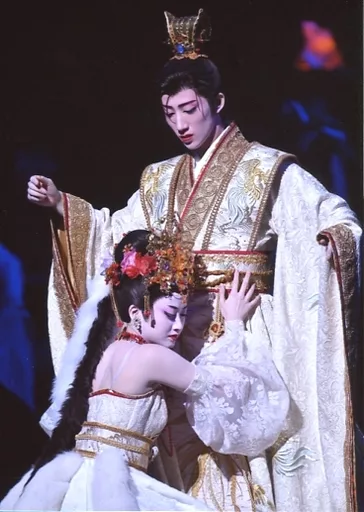 Official photo (female) / Takarazuka Revue (Sora-gumi) / actress Takarazuka Revue (Sora-gumi) / Suzuho Makaze / Madoka Hoshikaze / Live Photo / Above the Knee / White Costume / Gold / Both Hands Up / Hugging / 2L Size / Sora-gumi Tokyo Performance 「 Shirasagi (Shirasagi) no Shiro 」 「 Heresies Renaissance 」 Stage Photo