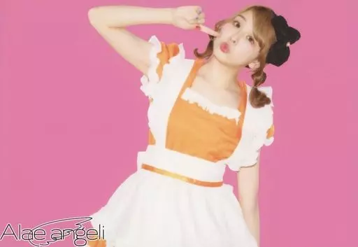 Japanese title: 生写真(女性)/アイドル/AIKATSU☆STARS! AIKATSU☆STARS!/未来みき/横型・膝上・衣装オレンジ・白・右手人差し頬・体傾け・背景ピンク/Alae angeli(アーラェ アンゲリー)主催舞台14弾「うらめし屋で召し上がれ」
