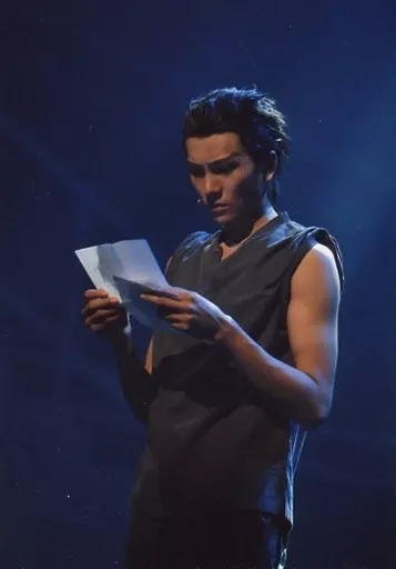 Japanese title: 生写真(男性)/俳優 財木琢磨(沖津飛沫)/ライブフォト・膝上・衣装グレー・左向き・キャラクターショット/『「DIVE!!」The STAGE!!』リピーター特典舞台写真