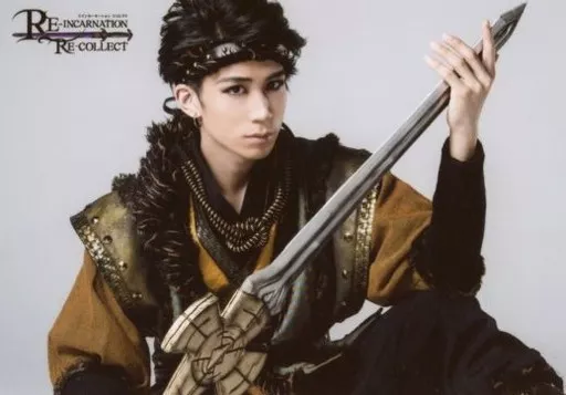 Japanese title: 生写真(男性)/俳優 鐘ヶ江洸(徐栄)/横型・膝上・座り・両手武器・肘つき・キャラクターショット/舞台「RE-INCARNATION RE-COLLECT」ランダムブロマイド