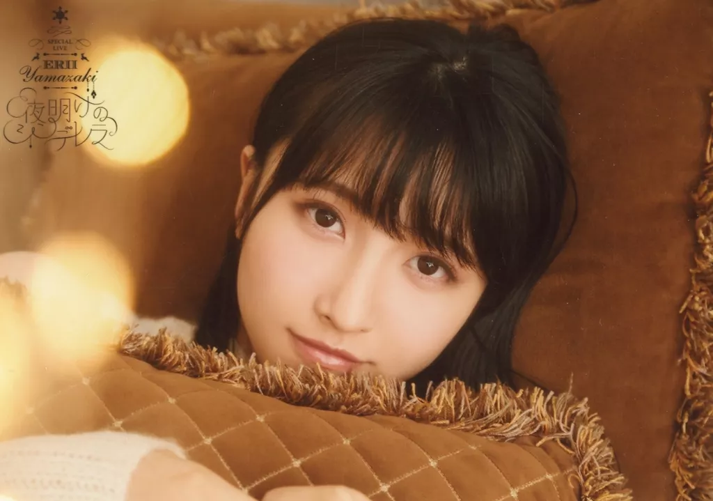 Eri Yamazaki / horizontal, bust up, costume white, background brown / "Eri YAMAZAKI SPECIAL LIVE ~ Dawn's Cinderella ~" Trading Bromide