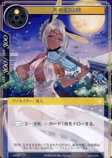 Japanese title: フォース オブ ウィル/U/リゾネイター/光/新生ヴァルハラクラスタ 第2弾ブースターパック 神世界の訪問者 SNV-011[U]:月の演奏家