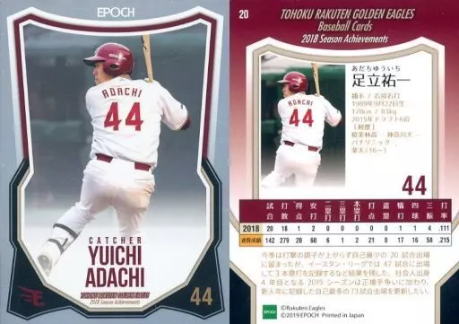 Sports / Regular Card / Tohoku Rakuten Golden Eagles 2018 Season Achievement 20 [Regular Card] : Yuichi Adachi