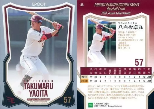 Sports / Regular Card / Tohoku Rakuten Golden Eagles 2018 Season Achievement 36 Regular Card : Takumaru Yaoita