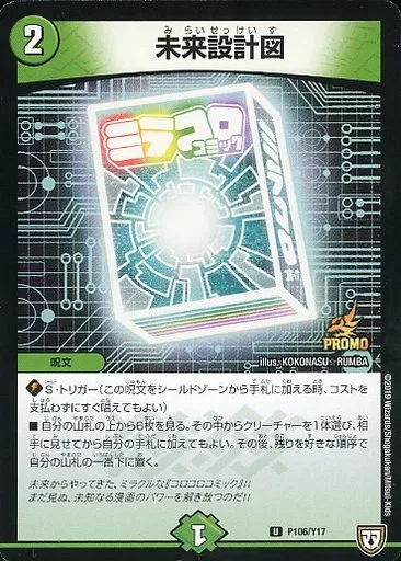 Japanese title: デュエルマスターズ/U/自然/「ミラコロコミック」Ver.1.0号付録 P106/Y17[U]:未来設計図