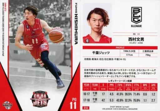 Japanese title: BBM/レギュラーカード/千葉ジェッツ/BBM2019 B.LEAGUE TRADING CARDS 2018-19 SEASON FAST BREAK 1st Half 014 [レギュラーカード] : 西村文男