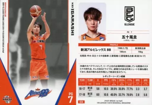 BBM / Regular Card / Niigata Albirex BB/BBM2019 b. LEAGUE TRADING CARDS 2018-19 SEASON FAST BREAK 1 st Half 034 [Regular Card] : Kei Igarashi