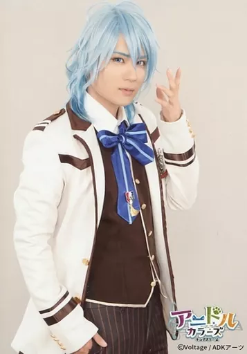 Japanese title: 生写真(男性)/俳優 樋口裕太(蓮水巴瑠)/膝上・左手上げ・背景白・キャラクターショット/ライブステージ 舞台「アニドルカラーズ キュアステージ」 L判個人ブロマイド 制服Ver.
