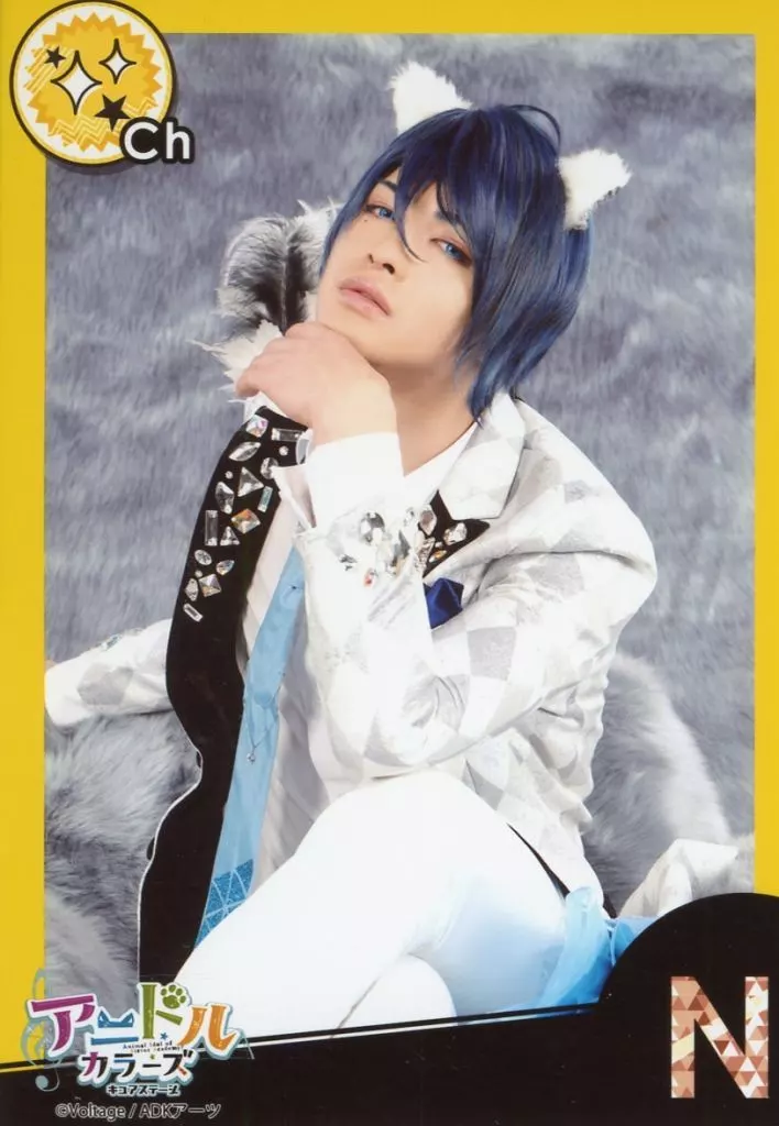 Japanese title: 生写真(男性)/俳優 西野龍太(夏月雫)/上半身・左手顎・背景グレー・枠黄・キャラクターショット・「N」/ライブステージ 舞台「アニドルカラーズ キュアステージ」 ランダムブロマイド アイドル服Ver.