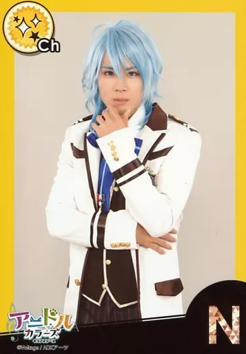 Official photo (male) / actor Yuta Higuchi (蓮水 巴瑠) / Upper Body / Left Hand Chin / Frame Yellow / Character Tomoshot / "N" / Live Stage Stage "Anydol Colors' Cure Stage" Random Bromide Uniform Ver.