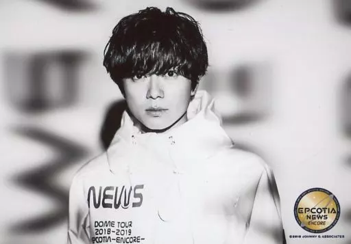 Japanese title: 生写真(ジャニーズ)/アイドル/NEWS NEWS/加藤シゲアキ/横型・バストアップ・衣装白・正面・モノクロ/「NEWS DOME TOUR 2018-2019 EPCOTIA -ENCORE-」オリジナルフォト
