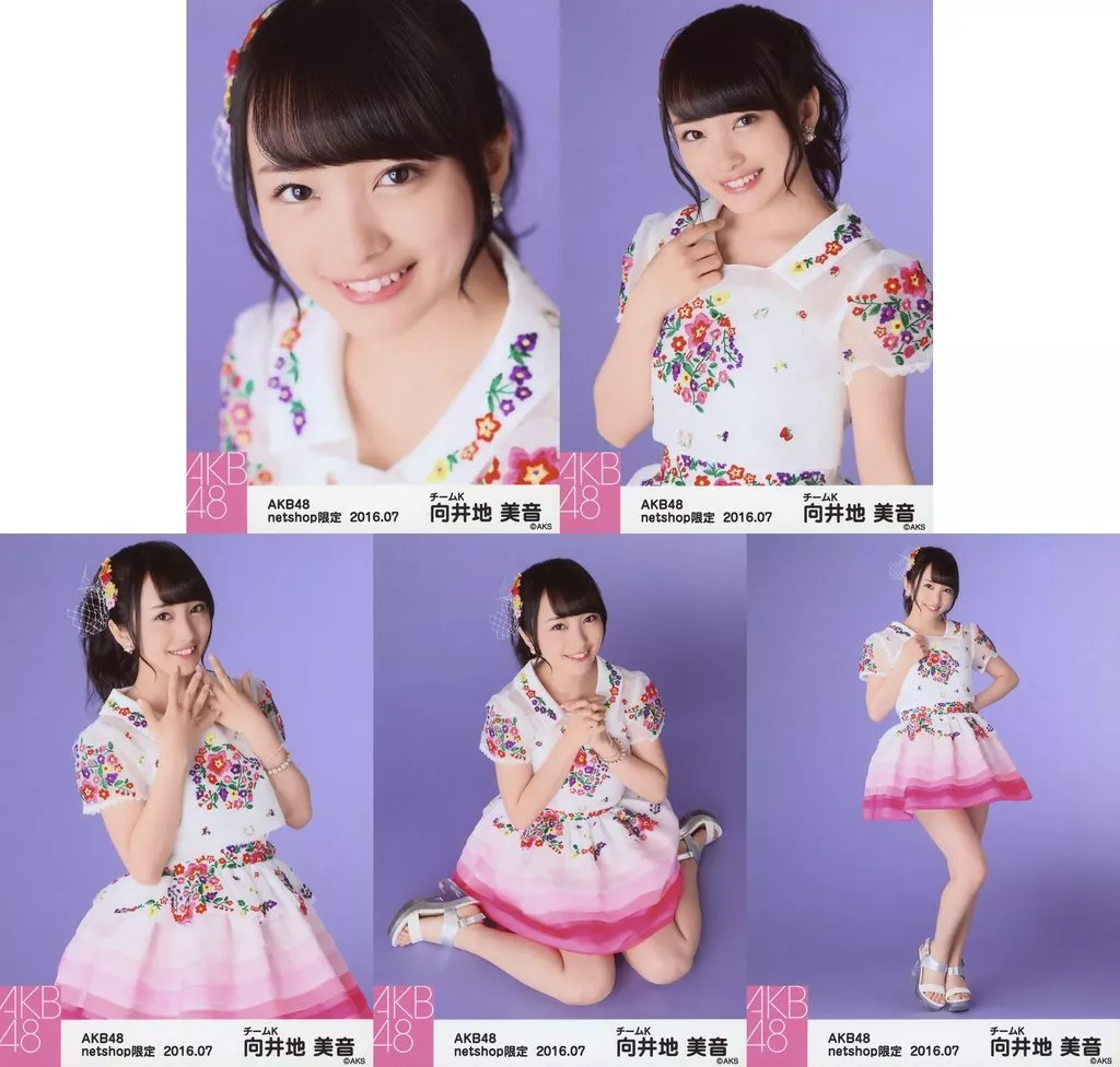 Japanese title: 生写真(AKB48・SKE48)/アイドル/AKB48 ◇向井地美音/AKB48 2016年7月度 net shop限定個別生写真「2016.07」「ピンク花柄刺繍」衣装 5種コンプリートセット