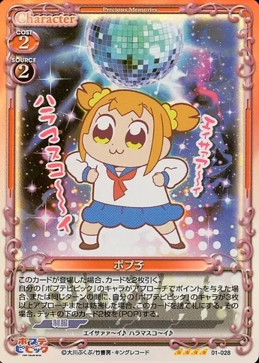 Japanese title: プレシャスメモリーズ/SR/キャラクター/赤/ポプテピピック ブースターパック 01-028[SR]:(ホロ)ポプ子