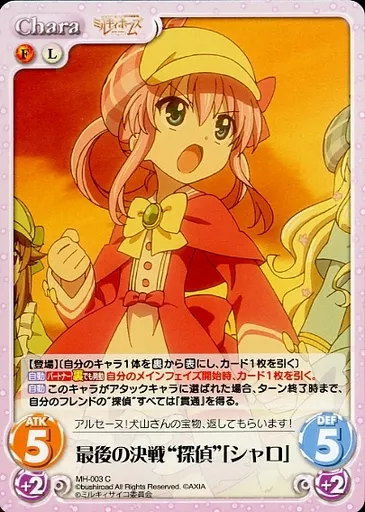 Japanese title: カオス/C/Chara/火光/ブースターパック 探偵オペラ ミルキィホームズ MH-003[C]:最後の決戦“探偵”「シャロ」