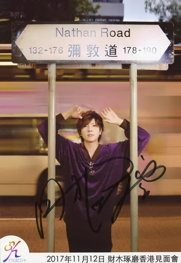 Japanese title: 生写真(男性)/俳優 ☆財木琢磨/直筆サイン入り・膝上・衣装紫・両手上げ・2017年11月12日 財木琢磨香港見面會/「財木琢磨香港見面會2017」チケット特典生写真