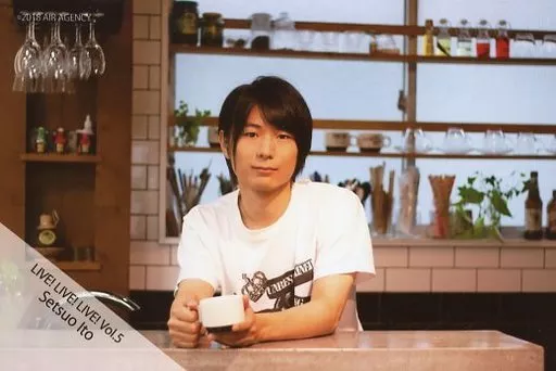Japanese title: 生写真(男性)/声優 伊藤節生/横型・上半身・衣装白・黒/「Gravity LIVE! LIVE! LIVE! Vol.5」ブロマイド