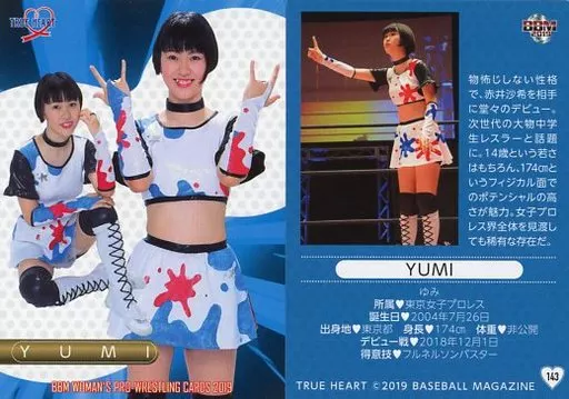 Japanese title: BBM/レギュラーカード/BBM 女子プロレスカード2019 TRUE HEART 143 [レギュラーカード] : YUMI