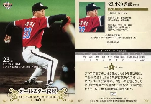 Japanese title: BBM/レギュラーカード/大阪近鉄バファローズ/BBM2014 オールスター伝説90’s 29 [レギュラーカード] : 小池秀郎