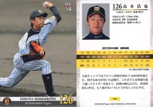 Japanese title: BBM/レギュラーカード/BBM2014 阪神タイガース T69 [レギュラーカード] : 島本浩也