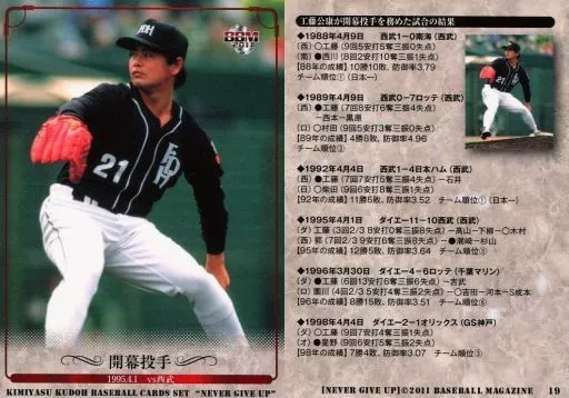 Japanese title: BBM/レギュラーカード/BBM2011 工藤公康 “NEVER GIVE UP” 19 [レギュラーカード] : 開幕投手