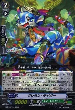Japanese title: ヴァンガード/RR/ノーマルユニット/グレートネイチャー/ヴァンガードG ブースターパック 第2弾「風華天翔」 G-BT02/019[RR]:クレヨン・タイガー