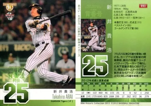 Japanese title: BBM/レギュラーカード/阪神タイガース/BBM2013 ヒストリックコレクション「プロ野球背番号列伝」 093 [レギュラーカード] : 新井貴浩