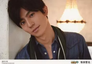 Japanese title: 生写真(男性)/俳優/D-BOYS D-BOYS/牧田哲也/横型・バストアップ・デニムシャツ・壁もたれ/「2013.10」/WE SHOP限定 公式生写真