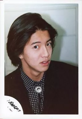Japanese title: 生写真(ジャニーズ)/アイドル/SMAP SMAP/木村拓哉/バストアップ・衣装黒・水玉模様・顔斜め・背景白/公式生写真