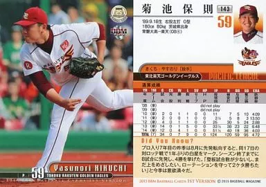 BBM / Regular Card / Tohoku Rakuten Golden Eagles / BBM2015 Baseball Card 1 st Version 143 [Regular Card] : Yasunori Kikuchi