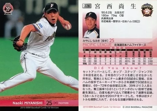 BBM / Regular Card / Hokkaido Nippon-Ham Fighters / BBM 2010 Baseball Card 1 st Version 226 [Regular Card] : Naoo Miyanishi