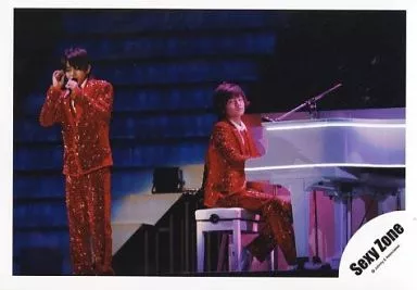 Japanese title: 生写真(ジャニーズ)/アイドル/Sexy Zone Sexy Zone/佐藤勝利・中島健人/ライブフォト・横型・全身・衣装赤・佐藤左手マイク・中島座り・ピアノ/公式生写真