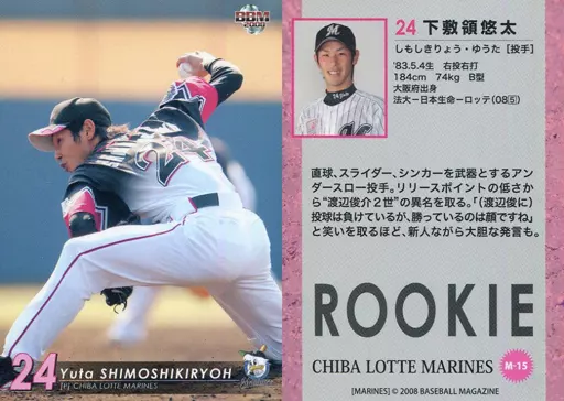 Japanese title: BBM/レギュラーカード/BBM2008 千葉ロッテマリーンズ M-15 [レギュラーカード] : 下敷領悠太