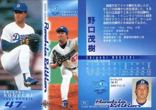 BBM / Regular Card / Chunichi Dragons / BBM2004 RookIe Edition 94 [Regular Card] : Shigeki Noguchi