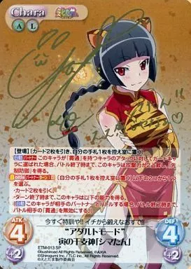 Japanese title: カオス/SP/Chara/風光/ブースターパック「えとたま」 ETM-013[SP]:(ホロ)アダルトモード寅の干支神「シマたん」(巽悠衣子金箔押しサイン入り)