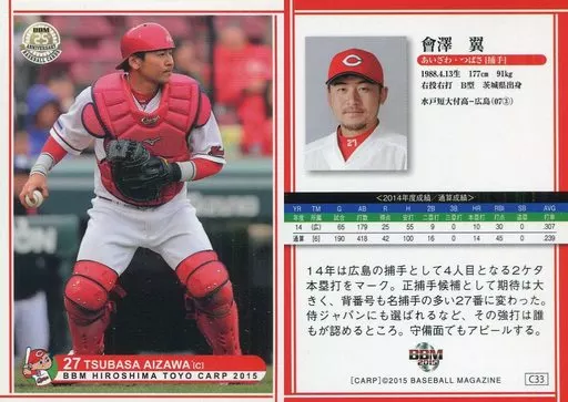 Japanese title: BBM/レギュラーカード/BBM2015 広島東洋カープ C33 [レギュラーカード] : 会澤翼