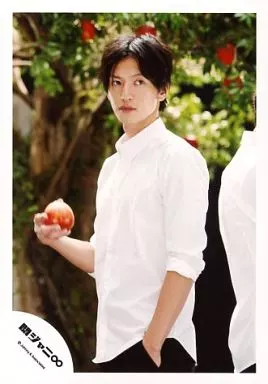 Japanese title: 生写真(ジャニーズ)/アイドル/関ジャニ∞ 関ジャニ∞/大倉忠義/上半身・衣装白・右手リンゴ・左手ポケット・目線右/公式生写真