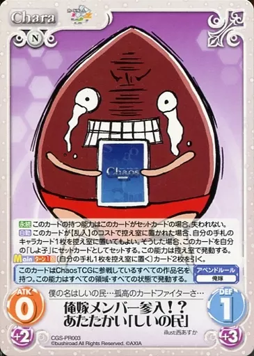 Japanese title: カオス/PR/Chara/無/ブシロードカードファイト2015 フリーファイト参加賞 CGS-PR003[PR]:俺嫁メンバー参入!?あたたかい「しいの民」